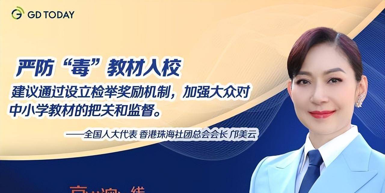 她在今年的两会中提出的一份建议就是关于“严防有‘毒’中小学教材的建议”,希望通过设立检举奖励机制,加强大众对中小学教材的把关和监督,保障教育和文化安全。